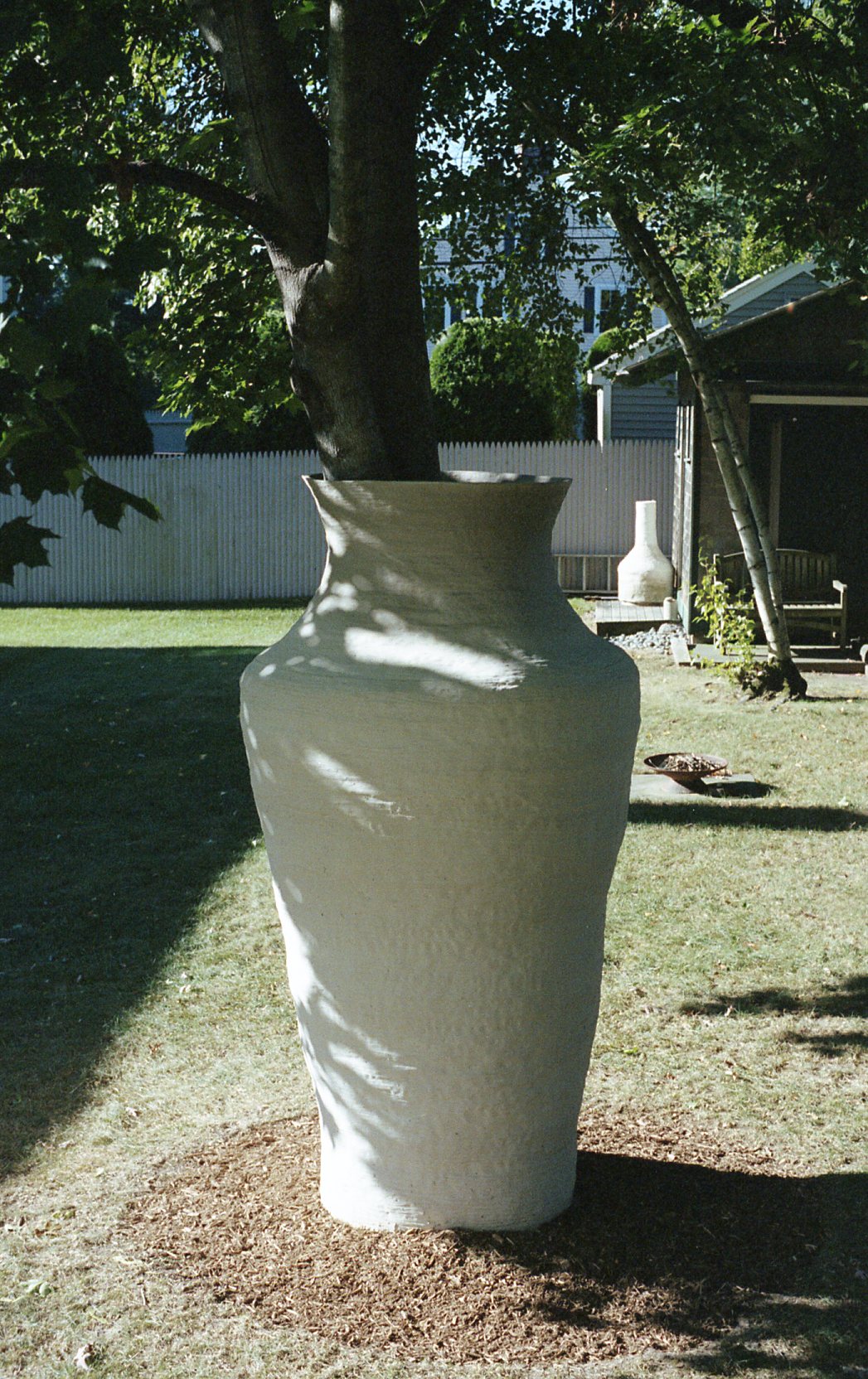 During a year when adapting to new circumstances took on a previously unknown significance, I decided to build a piece as close to home as possible. However, whether I am in a canyon or my backyard I am still at the mercy of the weather, and this build was no exception with near constant rain. Eighteen days later, I had eight feet and 800 pounds of raw clay urn appearing to contain a tree.